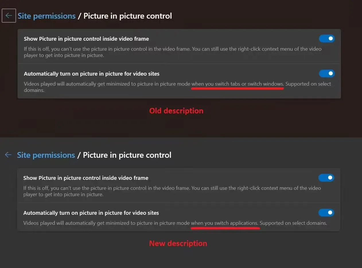 趣奇资源网本次为大家分享的是微软调整Edge浏览器自动画中画特性